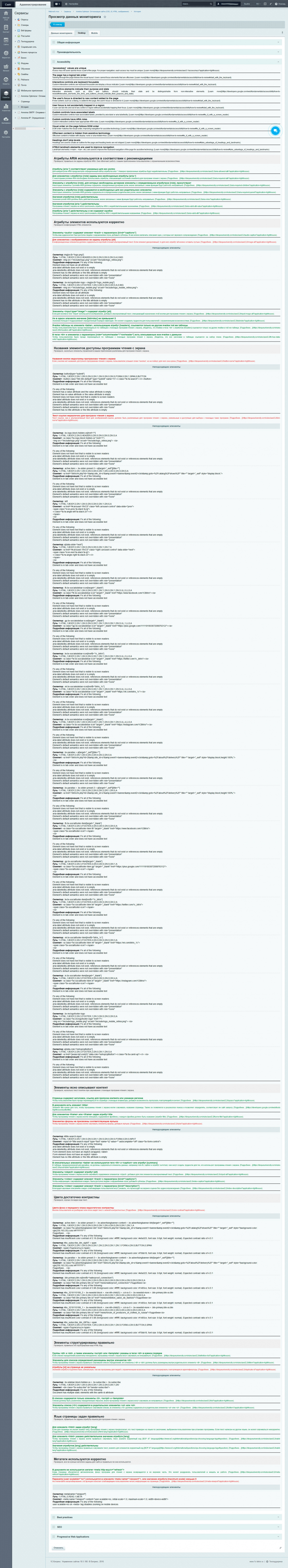 В разделе отображается информация о проведенном аудите доступности. Для улучшения качества сайта, рекомендуется исправить пункты, помеченные красным и оранжевым цветом.