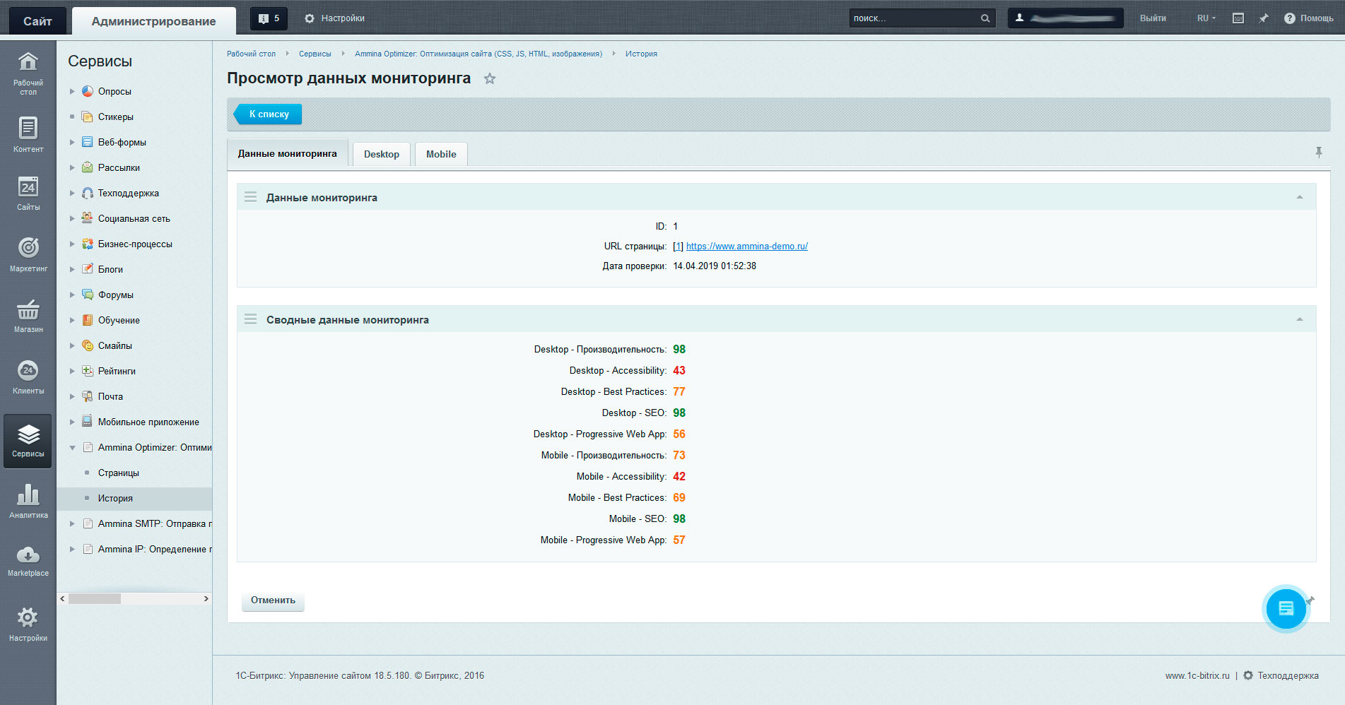 Аудит проводится как для десктопов, так и для мобильных устройств. Результирующие оценки при проведении нескольких аудитов могут различаться в пределах нескольких баллов и являются допустимой погрешностью измерений.