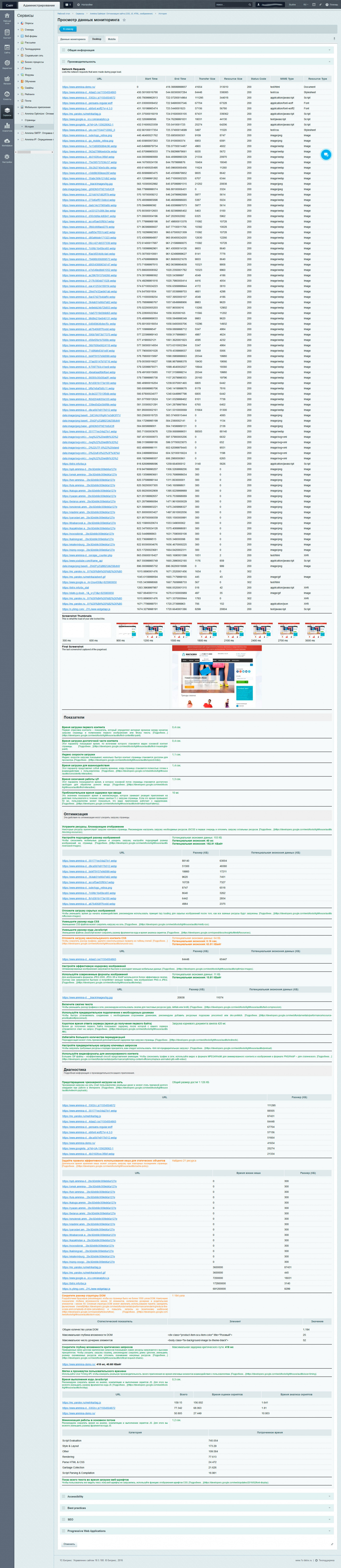 В разделе отображается информация о производительности страницы. Необходимо исправить пункты, помеченные красным цветом и, по возможности, исправить пункты, помеченные оранжевым цветом.